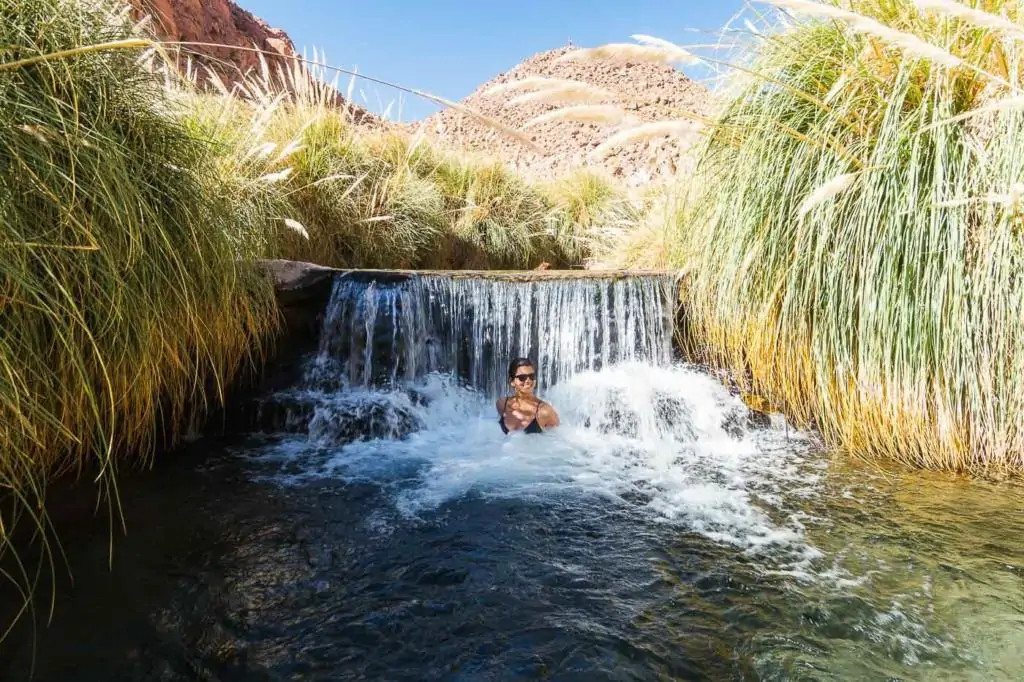• Relajación en las piscinas termales: Las Termas de Puritama cuentan con un conjunto de ocho piscinas de aguas termales a diferentes temperaturas, rodeadas de un paisaje de quebradas, formaciones rocosas y vegetación típica del desierto. Sumérgete en estas aguas cálidas, ricas en minerales, que ayudan a relajar los músculos, mejorar la circulación y revitalizar la piel.